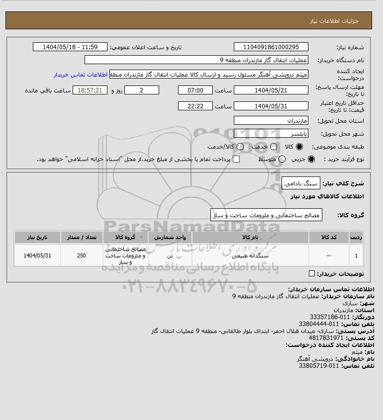 | 1 | -- | سنگدانه طبیعی | تن | مصالح ساختمانی و ملزومات ساخت و ساز | 250 | 1404/05/31 |
