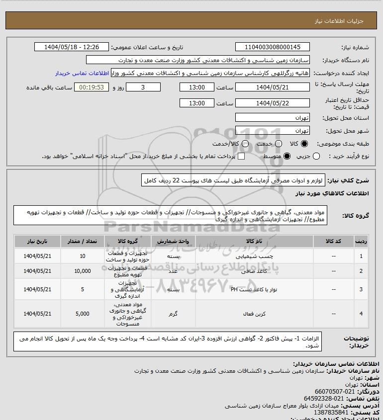 نام دستگاه خریدار:سازمان زمین شناسی و اکتشافات معدنی کشور وزارت صنعت معدن و تجارت