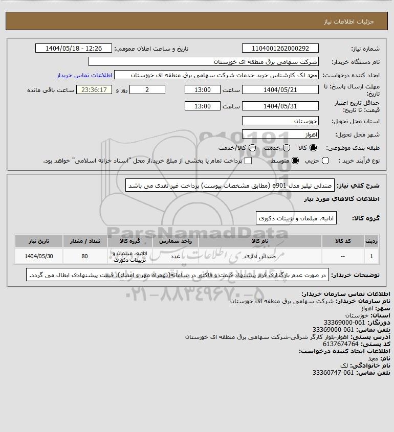 استعلام صندلی نیلپر مدل e901 (مطابق مشخصات پیوست) پرداخت غیر نقدی می باشد, استعلام صندلی نیلپر مدل e901 (مطابق مشخصات پیوست) پرداخت غیر نقدی می باشد