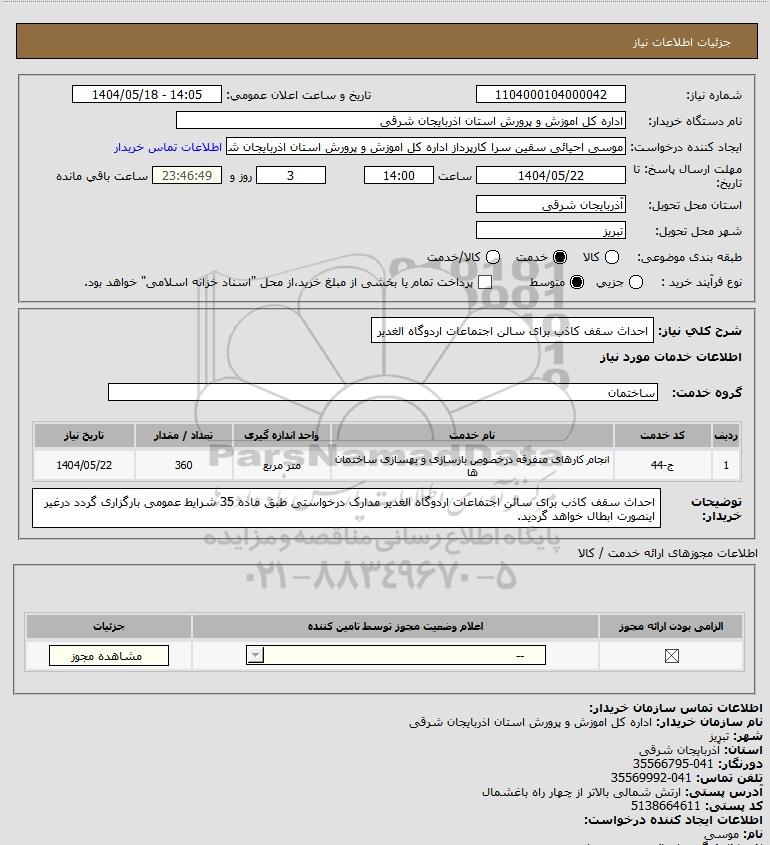 نام دستگاه خریدار:اداره کل اموزش و پرورش استان اذربایجان شرقی