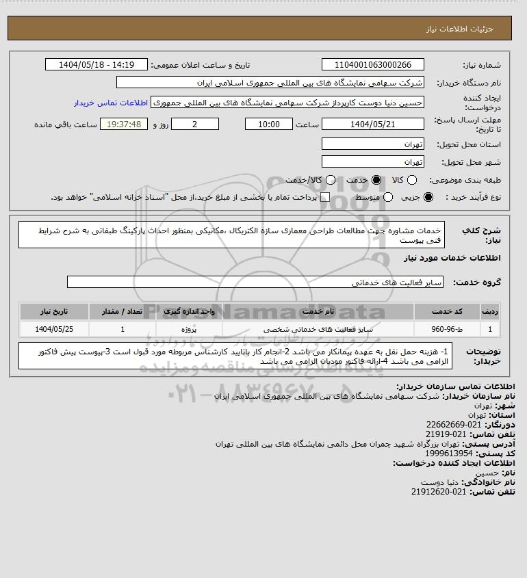 نام دستگاه خریدار:شرکت سهامی نمایشگاه های بین المللی جمهوری اسلامی ایران