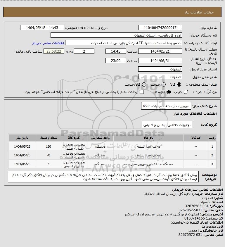 1 -- دوربین مدار بسته دستگاه تجهیزات دفاعی، ایمنی و امنیتی 120 1404/05/25