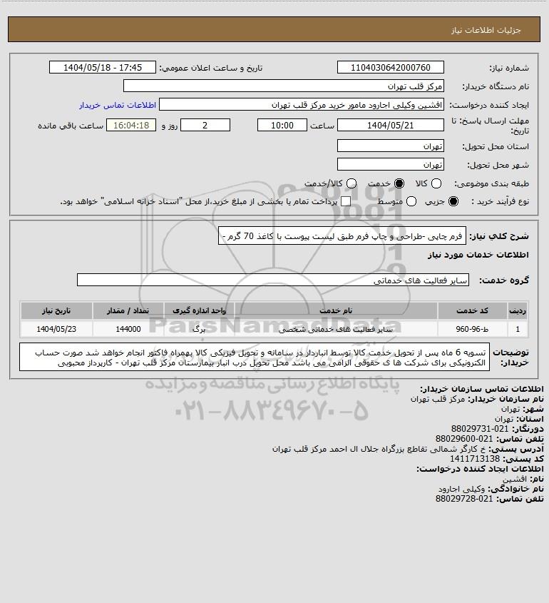 نام دستگاه خریدار:مرکز قلب تهران