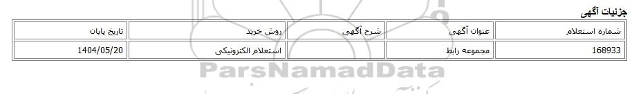 | 168933 | مجموعه رابط | استعلام الکترونیکی | 1404/05/20 |