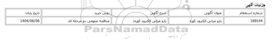 استعلام بها و موضوع استعلام مناقصه عمومی دو مرحله ای، بازو میانی الکترود کوره به اطلاع کلیه شرکتها و افراد متخصص واجد شرایط میرساند، آگهی گذار در نظر دارد از طریق استعلام بها، نسبت به انتخاب و دریافت پیشنهادات اقدام نماید. این استعلام با کد آگهی ثبت شده در سامانه خبرگزاری پارس نماد : 9384372 منتشر شده است. مشخصات استعلام : تاریخ شروع استعلام: 1404/05/18 آخرین مهلت ارسال پیشنهاد قیمت : 1404/06/06 و محل اجرای پروژه : استان خراسان رضوی میباشد. استعلام قیمت مورد درخواست : مناقصه عمومی دو مرحله ای، بازو میانی الکترود کوره با دستهبندیهای تخصصی و گروه های مرتبط : الکترود, صنایع حرارتی و برودتی, ساخت،نصب و تعمیرات صنایع فولاد, کوره, تجهیزات و ماشین آلات صنعتی, استعلام اطلاع رسانی میگردد.