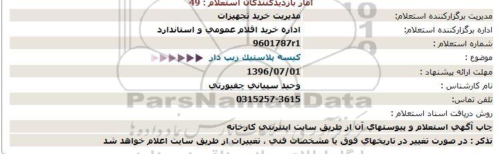 اداره برگزارکننده استعلام: اداره خرید اقلام عمومی و استاندارد