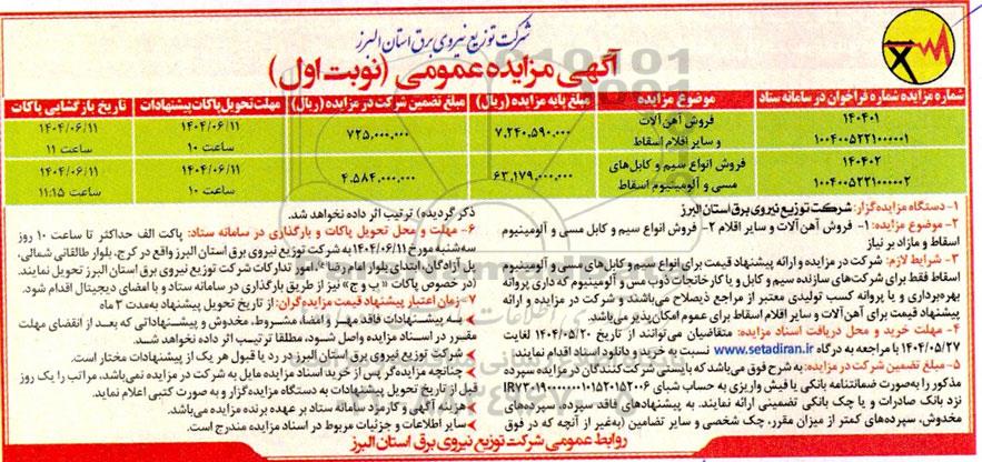 مزایده فروش آهن الات و سایر اقلام اسقاط..., مزایده فروش آهن الات و سایر اقلام اسقاط...