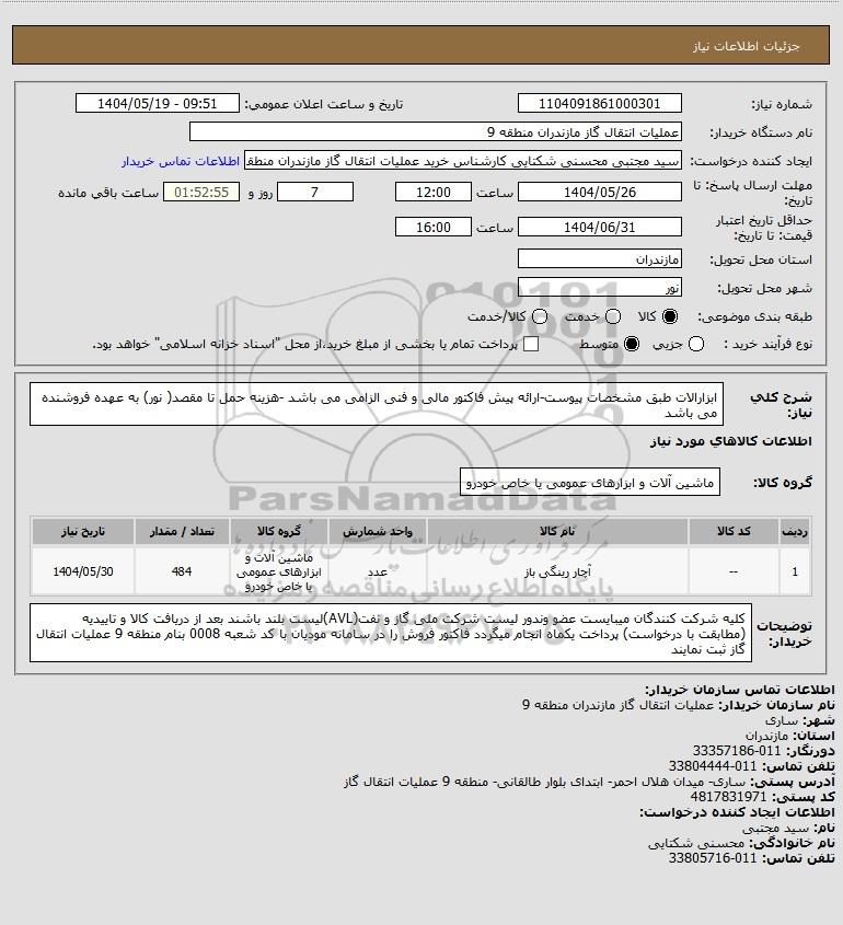 نام دستگاه خریدار:عملیات انتقال گاز مازندران منطقه 9