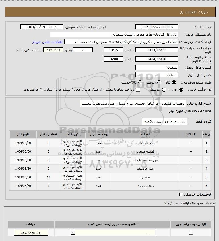 نام دستگاه خریدار:اداره کل کتابخانه های عمومی استان سمنان