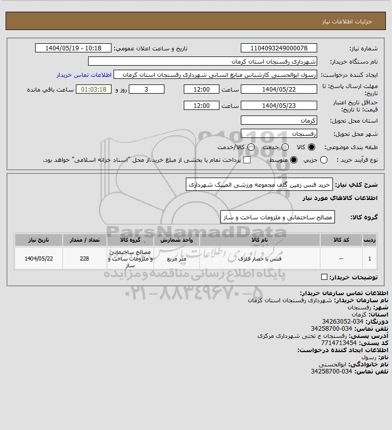 نام دستگاه خریدار:شهرداری رفسنجان استان کرمان