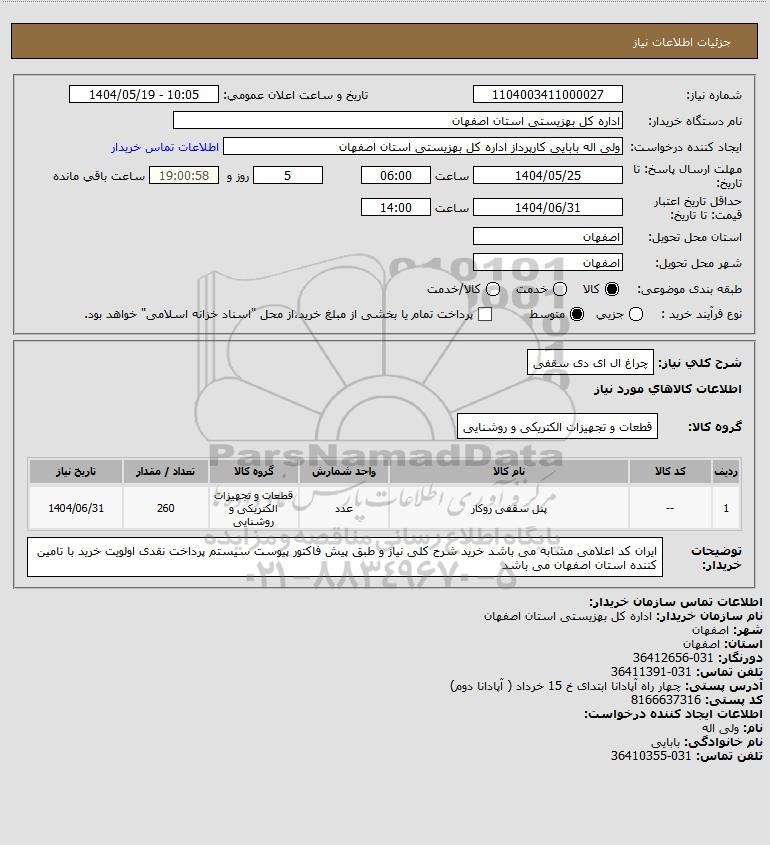 | 1 | -- | پنل سقفی روکار | عدد | قطعات و تجهیزات الکتریکی و روشنایی | 260 | 1404/06/31 |