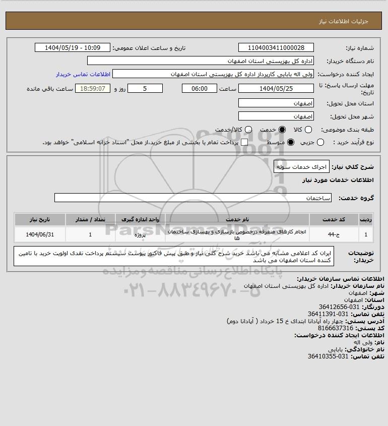 نام دستگاه خریدار:اداره کل بهزیستی استان اصفهان