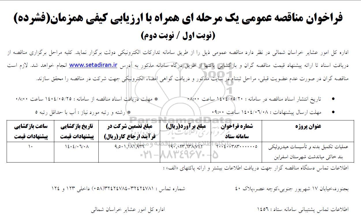5 فراخوان ارزیابی کیفی کارهای تکمیلی احداث سد ... 9810570 1404/08/15 new not special not payed مازندران
