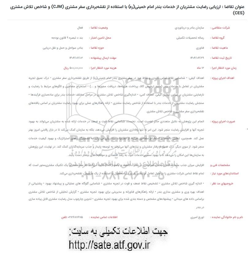 فراخوان ارزیابی رضایت مشتریان از خدمات بندر امام خمینی (ره) با استفاده از نقشه برداری سفر مشتری (CJM)..., فراخوان ارزیابی رضایت مشتریان از خدمات بندر امام خمینی (ره) با استفاده از نقشه برداری سفر مشتری (CJM)...