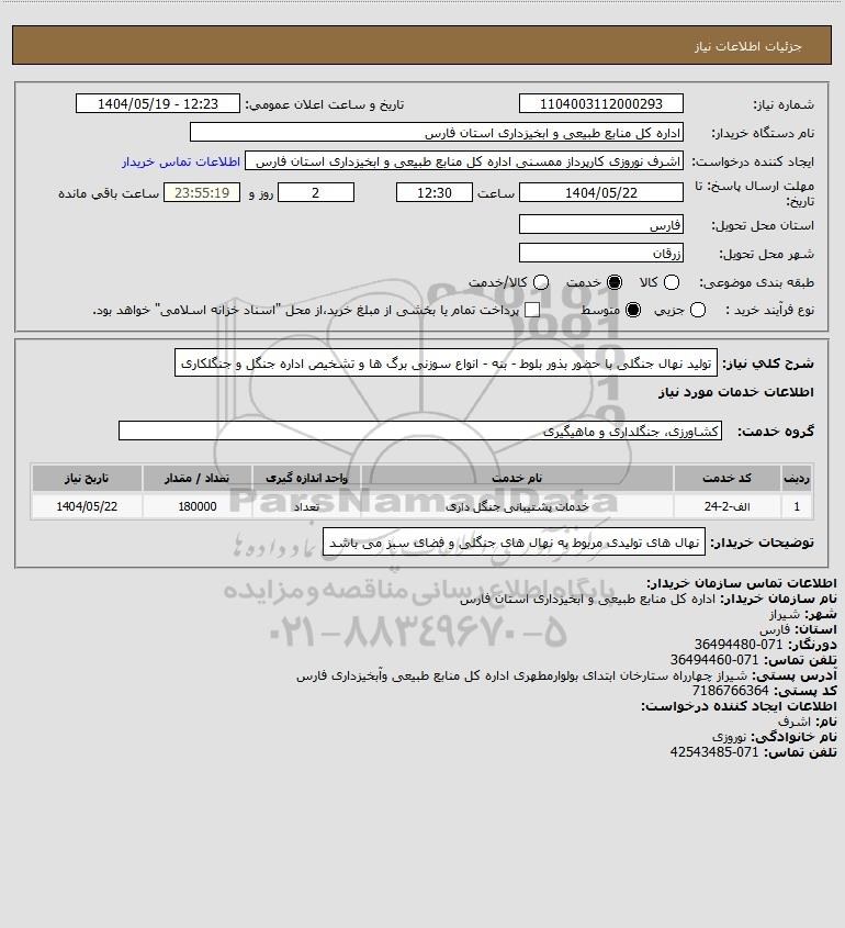 شرح کلی نیاز: تولید نهال جنگلی با حضور بذور بلوط - بنه - انواع سوزنی برگ ها و تشخیص اداره جنگل و جنگلکاری