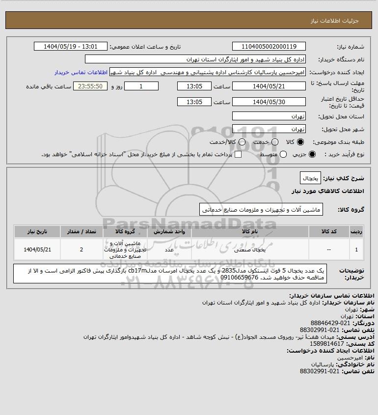 نام دستگاه خریدار:اداره کل بنیاد شهید و امور ایثارگران استان تهران