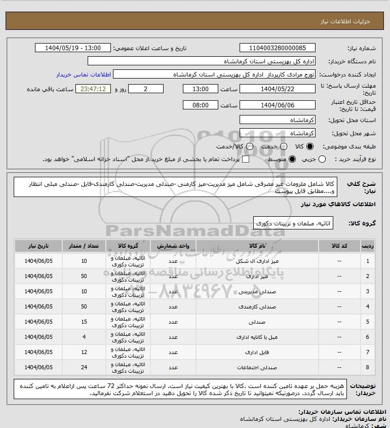 استعلام کالا شامل ملزومات غیر مصرفی شامل میز مدیریت-میز کارمنی -صندلی مدیریت-صندلی کارمندی-فایل -صندلی مبلی انتظار و....مطابق فایل پیوست, استعلام کالا شامل ملزومات غیر مصرفی شامل میز مدیریت-میز کارمنی -صندلی مدیریت-صندلی کارمندی-فایل -صندلی مبلی انتظار و....مطابق فایل پیوست