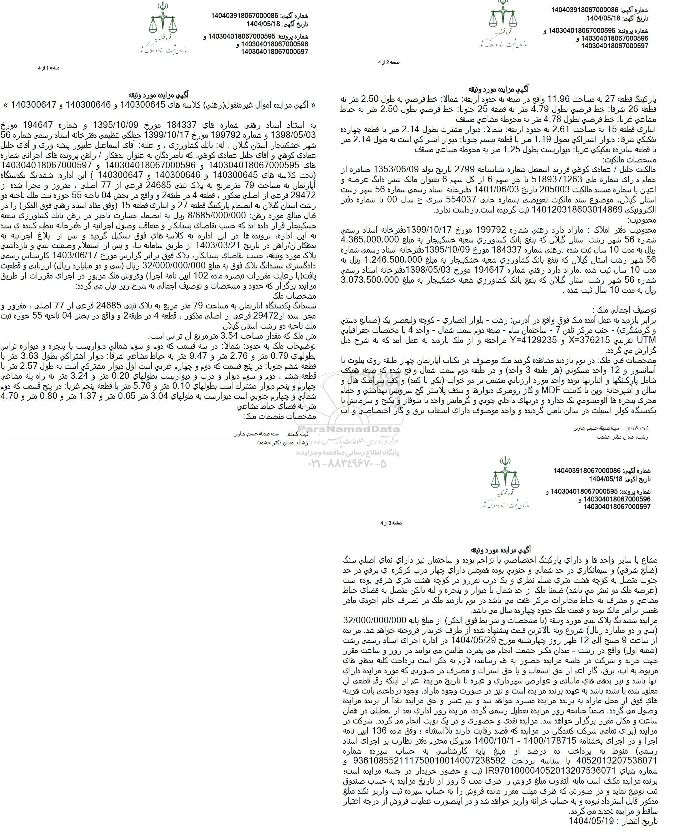 تمام آگهی ها طبق نمونه تصویر آگهی صرفا جهت اطلاع رسانی می باشد در خصوص استفاده از این آگهی هر گونه مسئولیت پرداخت به آگهی دهنده و بررسی و احراز هویت به عهده شرکت کنندگان می باشد و پایگاه خبری پارس نماد هیچگونه منفعت و مسئولیتی بابت تعهد این آگهی ندارد.