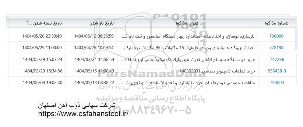 794003 مناقصه عمومی دو مرحله ای احیا، بازسازی و تعمیرات قطعات و تجهیزات ... 8:38:22  1404.5.13 19:2:30  1404.6.4