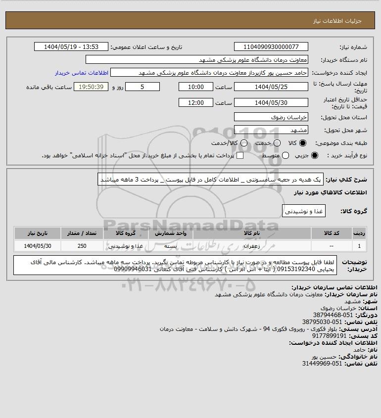 نام دستگاه خریدار:معاونت درمان دانشگاه علوم پزشکی مشهد