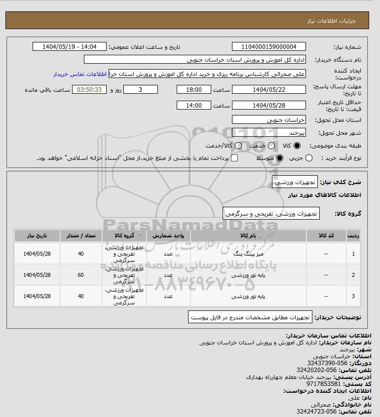 نام دستگاه خریدار:اداره کل اموزش و پرورش استان خراسان جنوبی