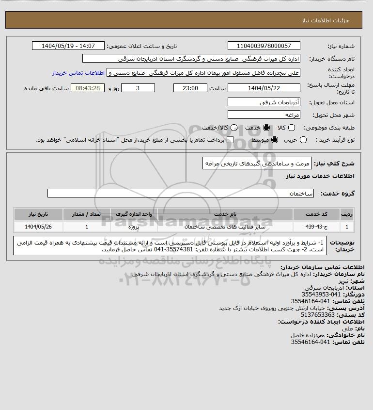 شرح کلی نیاز: مرمت و ساماندهی گنبدهای تاریخی مراغه