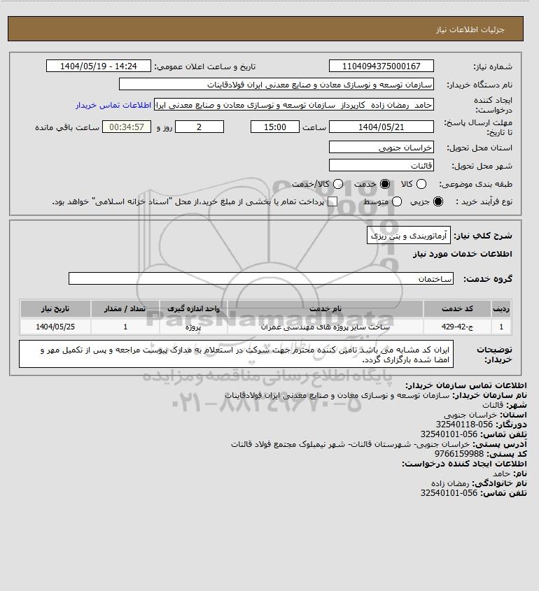 نام دستگاه خریدار:سازمان توسعه و نوسازی معادن و صنایع معدنی ایران فولادقاینات