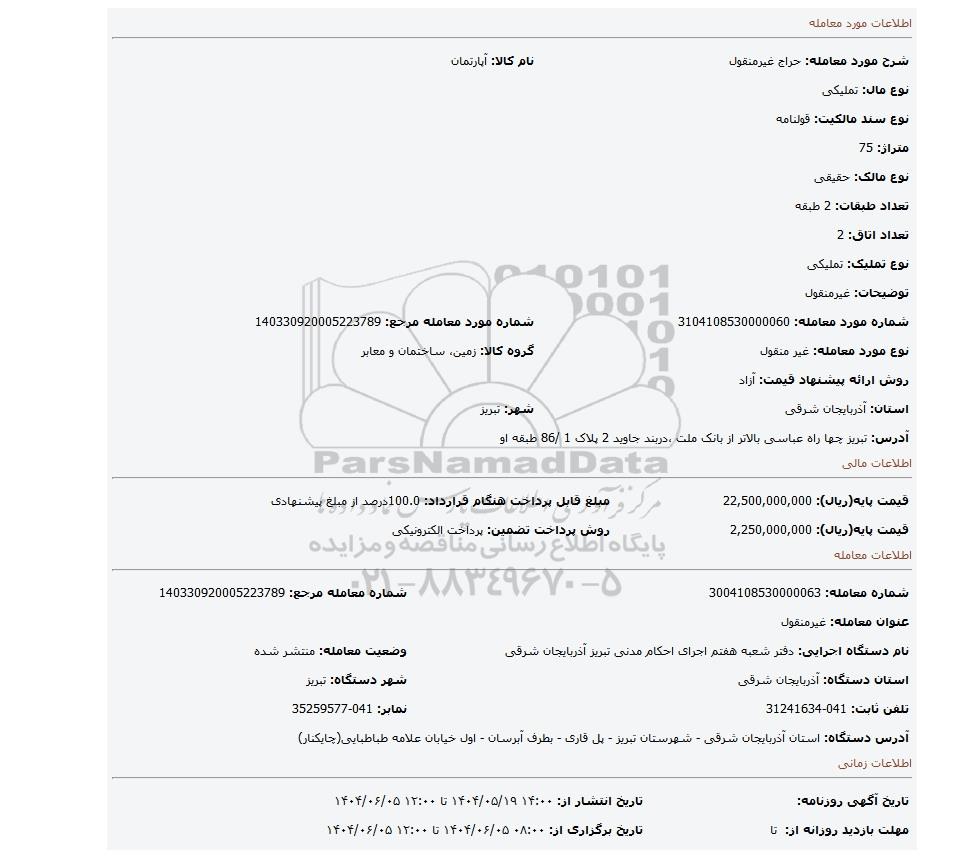 9 مزایده دستور فروش ملک مشاعی 9810687 1404/08/15 new not special not payed آذربایجان شرقی