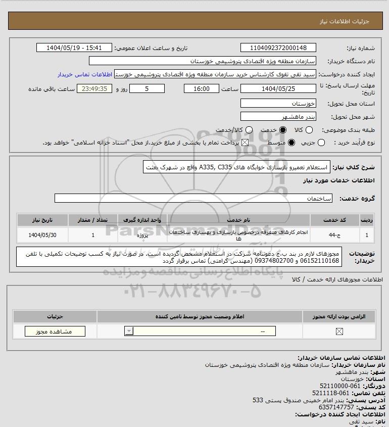 نام دستگاه خریدار:سازمان منطقه ویژه اقتصادی پتروشیمی خوزستان