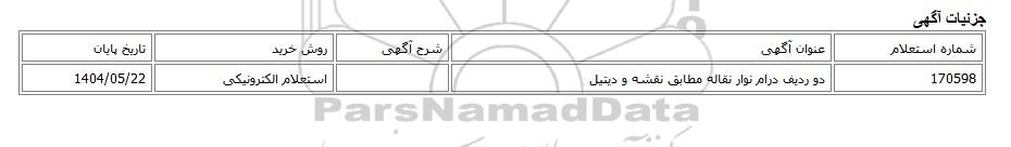 | 170598 | دو ردیف درام نوار نقاله مطابق نقشه و دیتیل | استعلام الکترونیکی | 1404/05/22 |