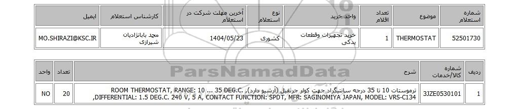 52501730THERMOSTAT1خرید تجهیزات وقطعات یدکیکشوری1404/05/23محمد بابانژادیان شیرازیMO.SHIRAZI@KSC.IR