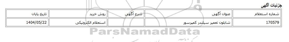 170579شابلون تعمیر سیلندر کمپرسوراستعلام الکترونیکی1404/05/22