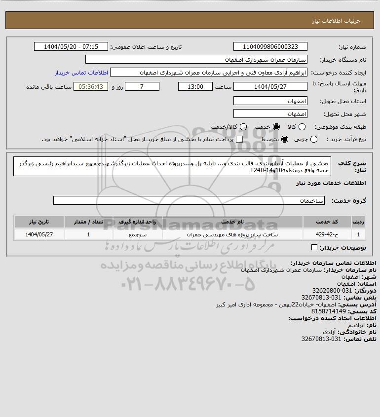 نام دستگاه خریدار:سازمان عمران شهرداری اصفهان