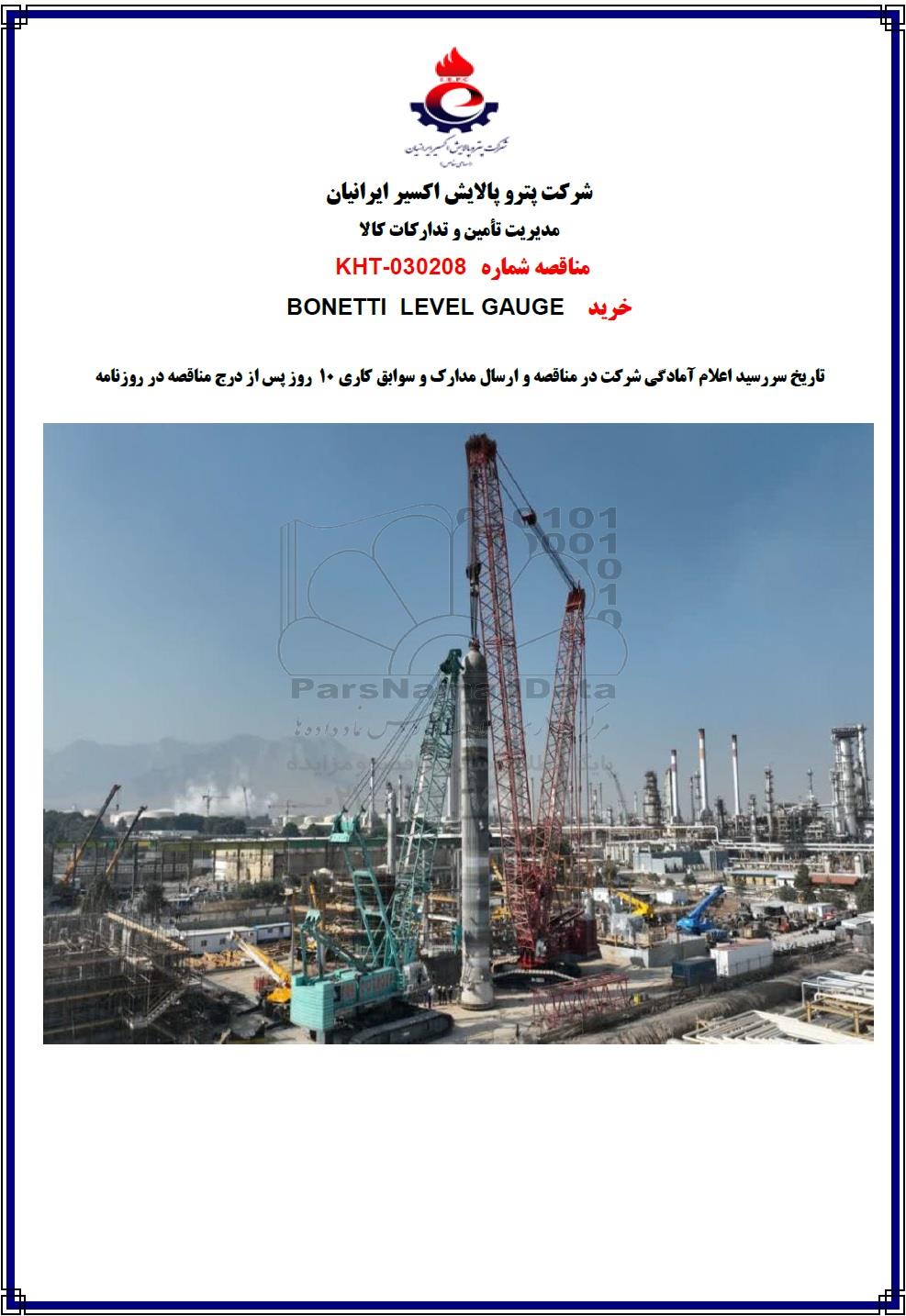 مناقصه خرید BONETTI LEVEL GAUGE از کلیه افراد متخصص و شرکتها واجد شرایط دعوت به عمل میآید در مناقصه با کد خبرگزاری پارس نماد: 9390073 شرکت نمایند.
