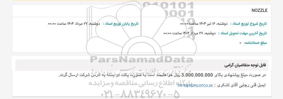 در صورت نیاز به دریافت راهنمایی یا پشتیبانی در خصوص استعلام و مناقصه و فراخوان مناقصه عمومی، مناقصه محدود، مناقصه بین‌ المللی، مناقصه دولتی، مناقصه خصوصی، مناقصه آنلاین فروش تجهیزات، مناقصه مشاوره‌ای مناقصه پتروشیمی و انرژی مناقصه صنایع و تجهیزات برق و مخابرات و نفت و گاز ... لطفاً با سایت خبری مناقصه و مزایده پارس‌نماد داده‌ها به شماره 88349670 تماس حاصل فرمایید.