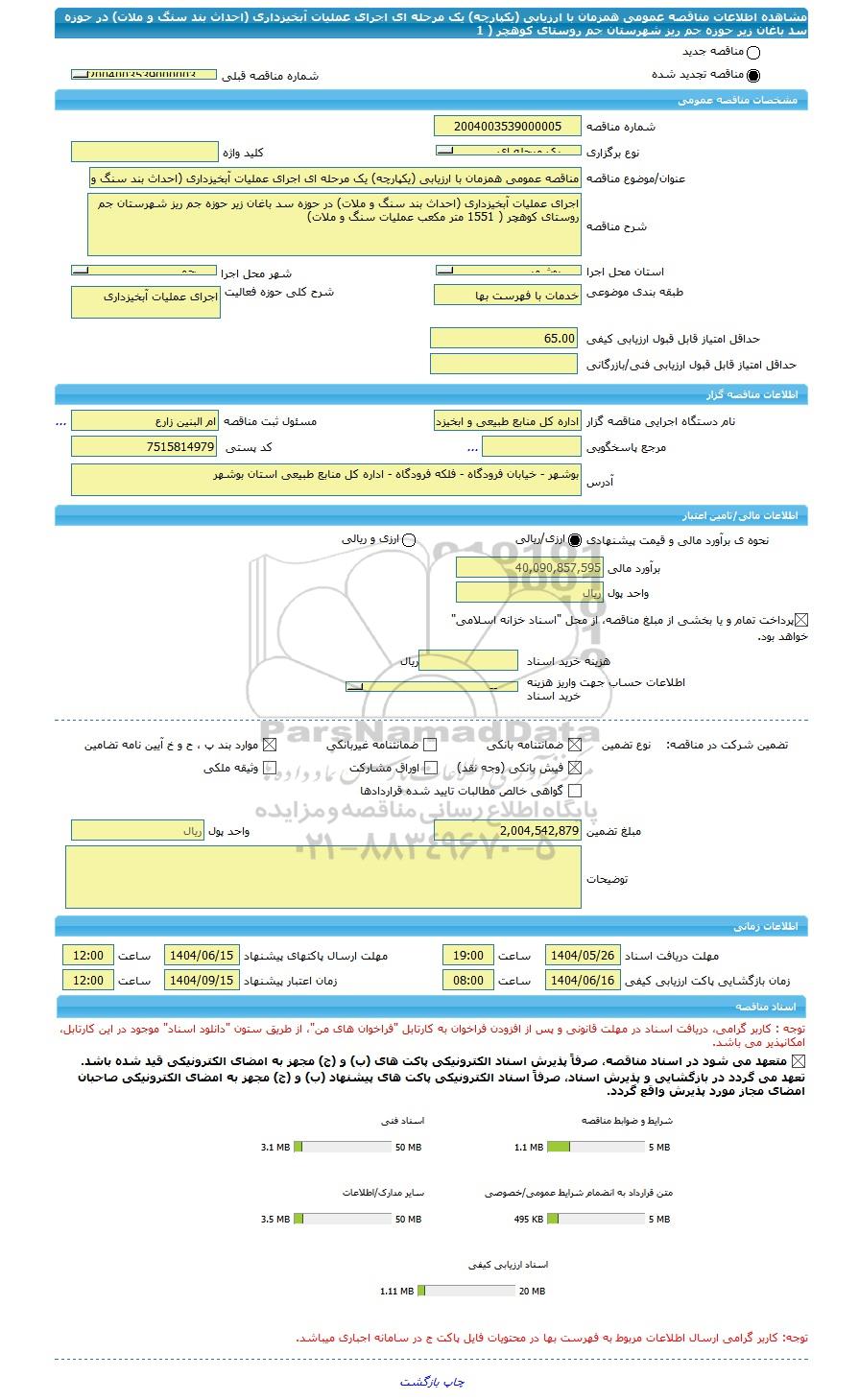 | مبلغ تضمین | 2,004,542,879 | واحد پول | ریال |