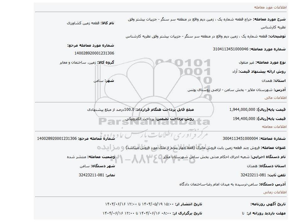 شماره مورد معامله: 3104113451000046شماره مورد معامله مرجع: 140028920001231306