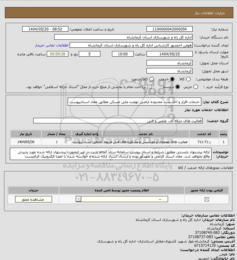 شرح کلی نیاز: خدمات افراز و اخذ سند محدوده اراضی نهضت ملی مسکن مطابق مفاد اسنادپیوست