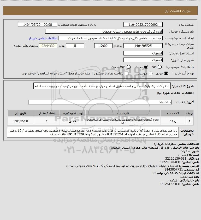 استعلام اصفهان اجرای پارکت سالن جلسات طبق تعداد و موارد و مشخصات مندرج در توضیحات و پیوست سامانه, استعلام اصفهان اجرای پارکت سالن جلسات طبق تعداد و موارد و مشخصات مندرج در توضیحات و پیوست سامانه
