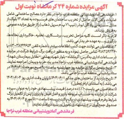 آگهی مزایده شماره 24 کرمانشاه نوبت اول ؟