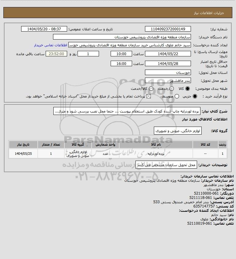 شرح کلی نیاز: پرده لوردراپه چاپ شده کودک طبق استعلام پیوست ... حتما محل نصب بررسی شود و متراژ...
