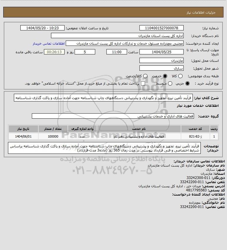 نام دستگاه خریدار:اداره کل پست استان مازندران