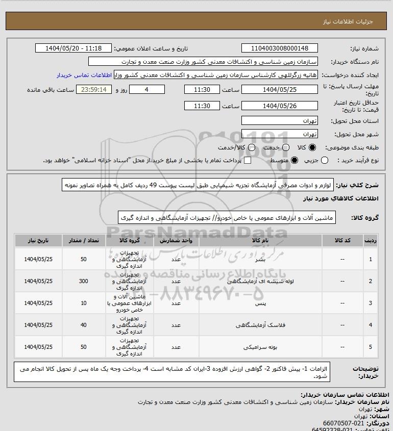 نام دستگاه خریدار:سازمان زمین شناسی و اکتشافات معدنی کشور وزارت صنعت معدن و تجارت