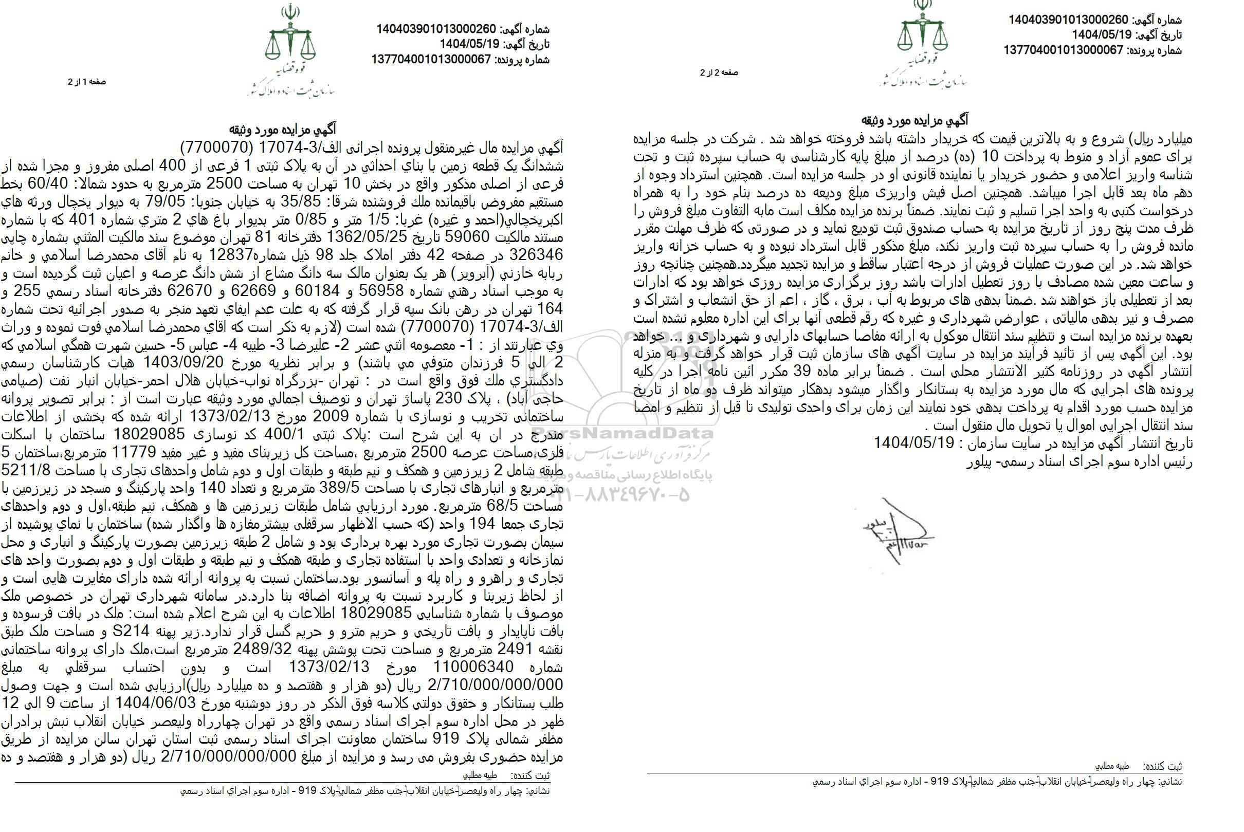 9 مزایده دستور فروش ملک مشاعی 9810687 1404/08/15 new not special not payed آذربایجان شرقی