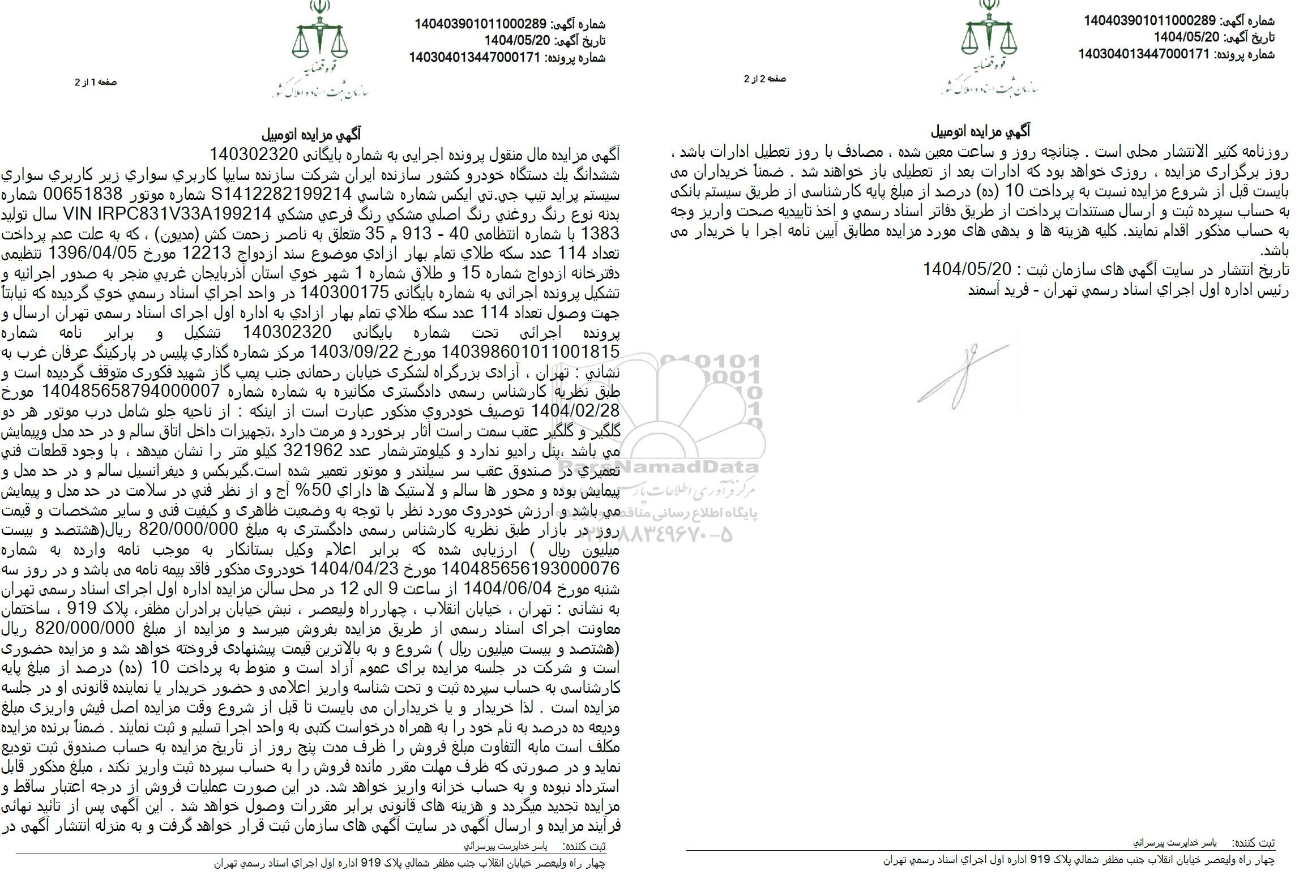 آگهی مزایده اتومبیل