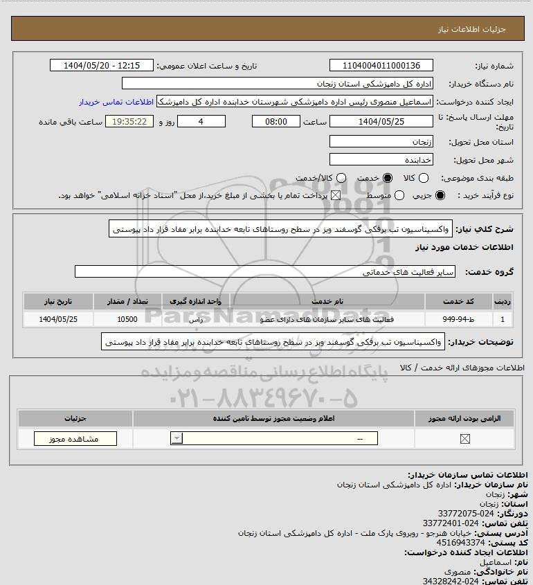 نام دستگاه خریدار:اداره کل دامپزشکی استان زنجان