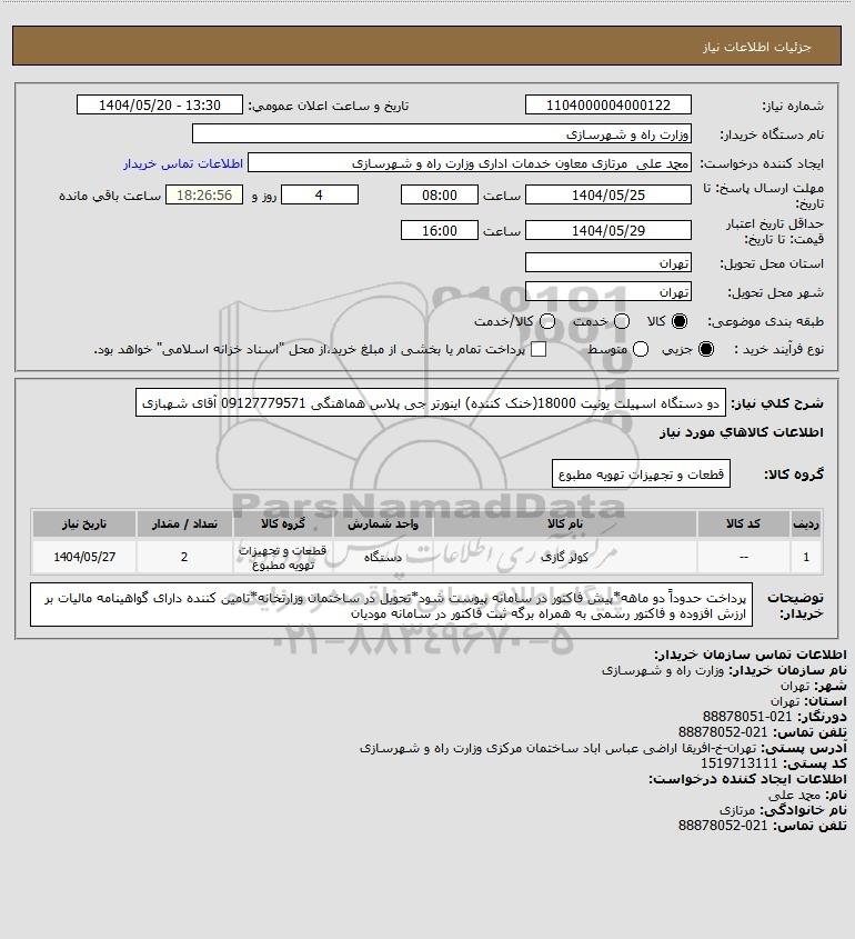 1 -- کولر گازی دستگاه قطعات و تجهیزات تهویه مطبوع 2 1404/05/27