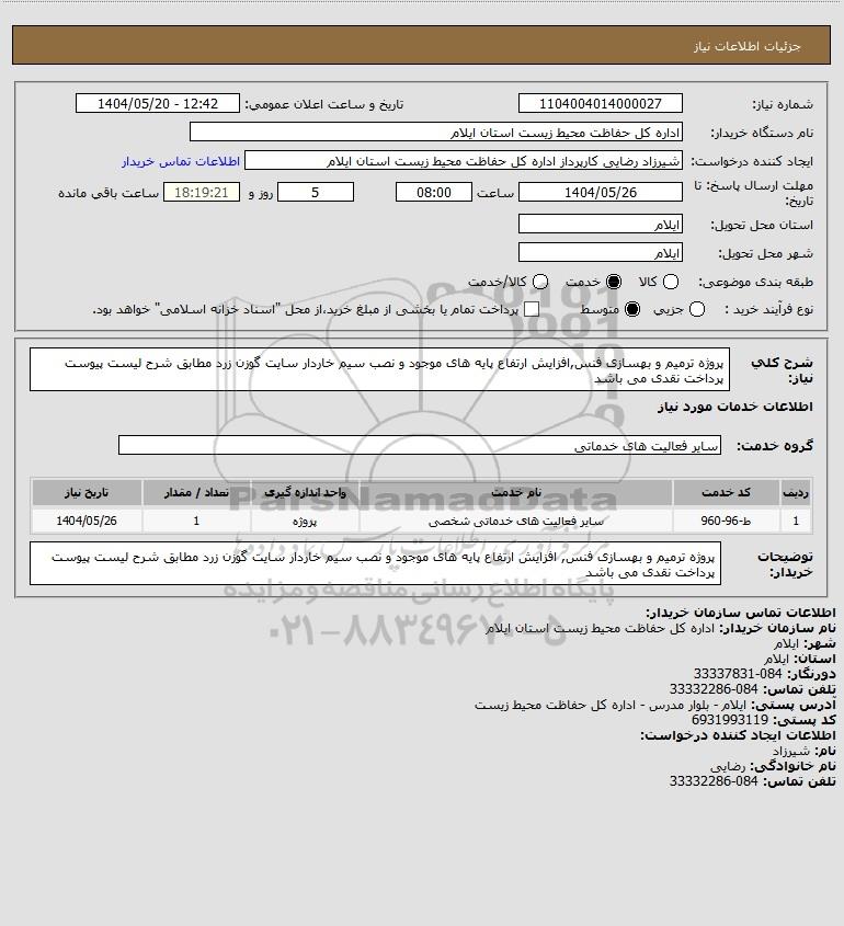 نام دستگاه خریدار:اداره کل حفاظت محیط زیست استان ایلام