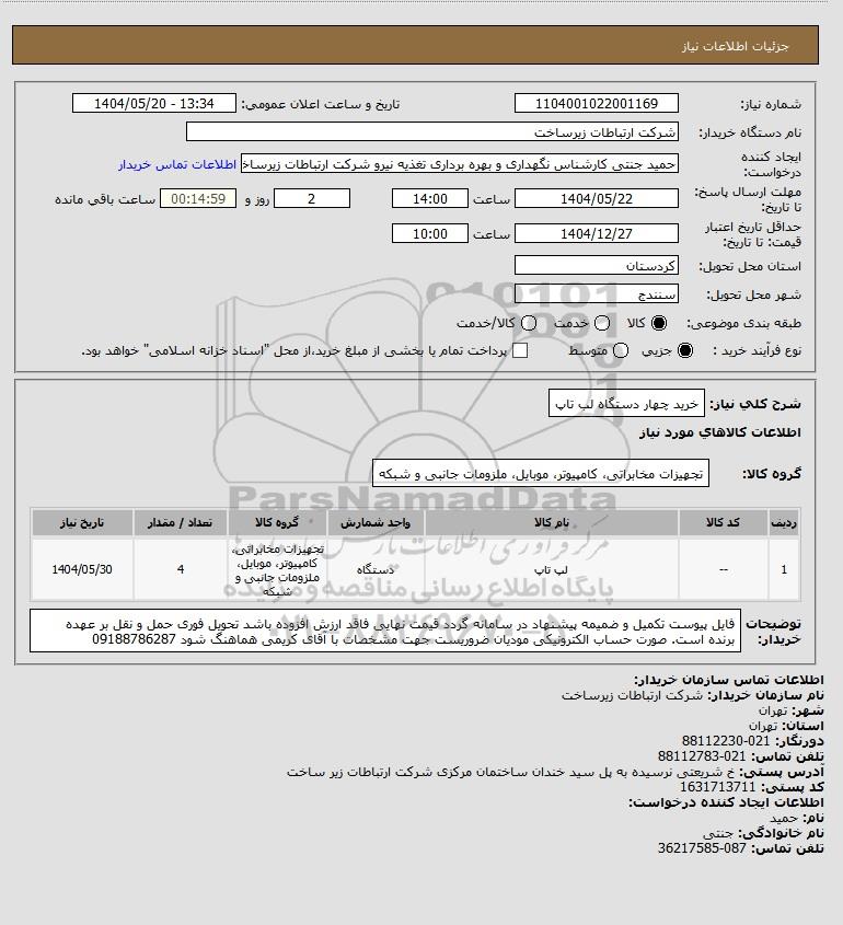 شرح کلی نیاز: خرید چهار دستگاه لب تاپ