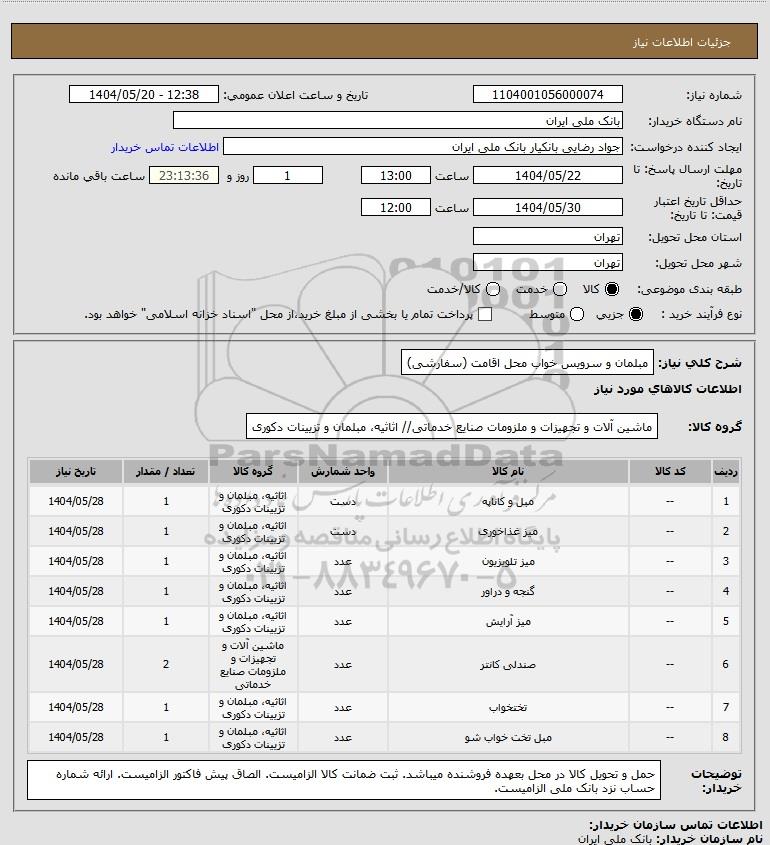 شرح کلی نیاز: مبلمان و سرویس خواب محل اقامت (سفارشی)